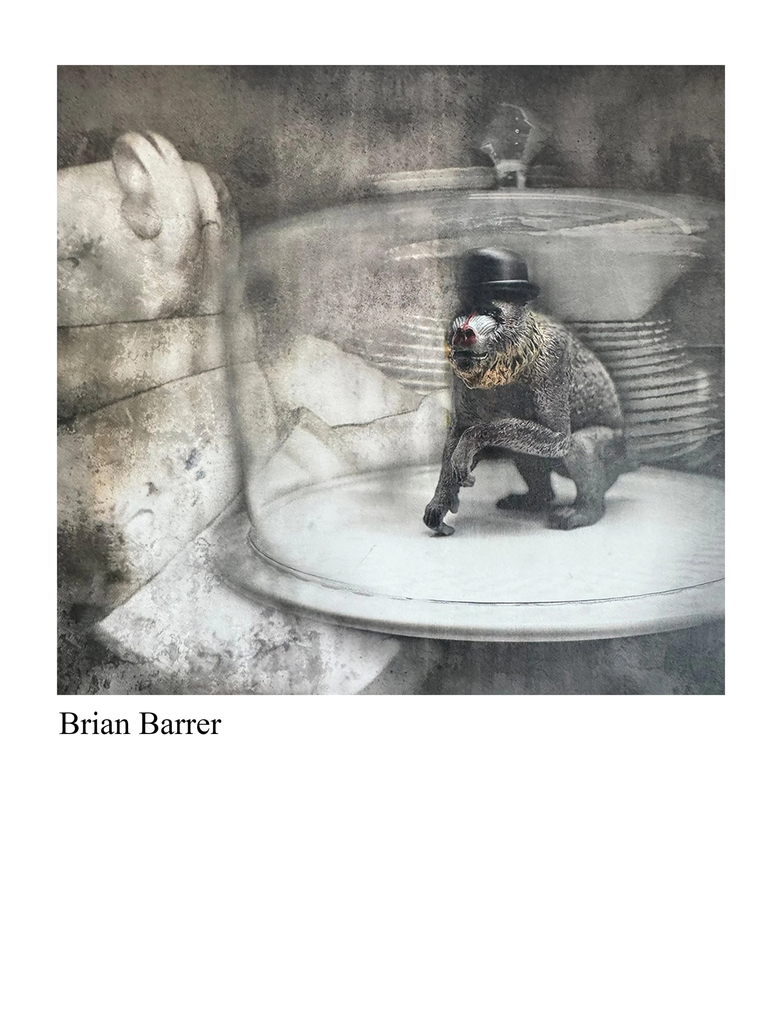 Artist Statement / Brian Barrer Breaking down the meaning of images and assembling new contexts is the basis for my work. Since the early 1990s I have used mixed media and photographic assemblage to express an ever evolving imagination. These often take the form of vibrant aesthetic experiences that fuse playful abstractions with the intensified realism of captured images. Artwork begins as a singular process with the object of connecting with others. The removal of collective barriers and the dismantling of our perceptions allow expressions from within to find this commonality. While the end result of my work offers discourse and a large degree of interpretive latitude, my hope is to share with the viewer a sense of creative connection and imaginative exploration. The creative process for my work often begins with visions of space, balance, and colour. Readily identifiable ideas provide the opportunity for story to be expressed often culminating in reinvented and dramatic resolution. The use of objects in a new conceptual context then offers the viewer a chance to explore their own imagination and creativity. The compositions of my pieces are usually finalized when the manipulated scene provides enough insight to evoke feelings of dislocated familiarity. I endeavor to achieve some level of fragmented fluency in most of my work.